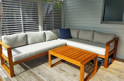 Our cosy Bach is located in a quiet area of Raglan - 15min walk to town and the harbour/playground, 5-10mins drive to surf beaches and 5min walk to Cafe for coffee and takeaways. There are two Queen bedrooms off the main living area and a small children's bunk room. Modern kitchen, covered sunny deck area set up for outdoor living with bbq, dining table and day bed. Fully fenced yard with parking on site. The bach is well equipped so you can enjoy a warm and cosy holiday. Please note the bunk beds are suitable for children only and there is no dishwasher in the kitchen.