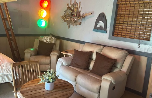 Experience Port Richey Cotee River like a local in this eclectic studio mancave apartment. The cozy space features 1 queen bed in the bedroom and a queen bunk bed above requiring a ladder to access. Guests can enjoy amenities like a tiki hut bbq, heating/AC, full kitchen with new stainless appliances. Amenities like shampoo towels & hairdryer. The quiet ambiance and unique decor of this mancave is perfect for a relaxing getaway in a safe residential neighborhood. Our rules: 1.) Please no smoking or vaping inside. 2.) The person who rents the unit must be a guest on sight. 3.) Please do not go on to our neighbors property. 4.) Must be 25 years or older to rent. 5.) No parties or loud noise after 10pm.
