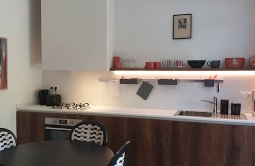 1 fitted kitchen with table + living room with 160 cm sofa bed