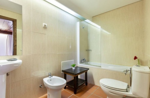With capacity for 12 people (+ 3 children), it has 6 bedrooms all with private bathroom, living room (with snooker table, WIFI, TV, satellite channels, DVD player, etc.), fully equipped kitchen equipped (electric hob, oven, dishwasher, fridge, freezer, microwave, etc.), swimming pool, outdoor dining area with barbacue and private parking. In addition to beds for 12 people, we also have 3 air mattresses available (we accept reservations for up to 15 people since 3 of them do not mind sleeping on air mattresses), we also provide bedding for air mattresses (please advise me before check-in should you need any mattress). The house already has sheets and bed linen such as toilet towels and toilet paper. The kitchen is not equipped with food. The cleaning and maintenance of the pool is made by the owners.