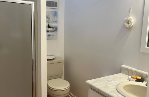 This 1-bedroom apartment is perfect for your escape to Kennebunk. With a lovely living room featuring a cozy sofa bed, guests can unwind after a day of exploring. The bathroom is equipped with a hairdryer and shower for added convenience. The bedroom has a king size bed and a table to sit at with your computer. Kickback, relax, and enjoy everything Kennebunk and our apartment has to offer.