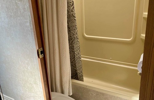 Escape to this recreational vehicle in picturesque Tuttle. This cozy RV features 2 bedrooms with a queen bed and a twin bed, along with a comfortable living room area with a futon. Enjoy the convenience of AC, heating, and WiFi during your stay. We look forward to hosting you at our place.