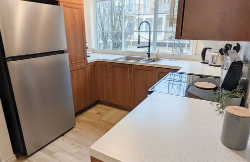 - Cuisine équipée avec électroménagers en acier inoxydable
