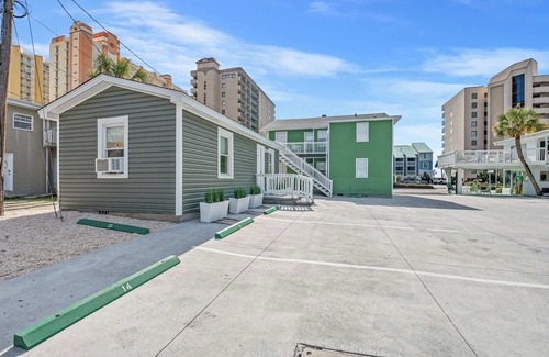 Welcome to R+R Beach Club! Experience the charm of Ocean Drive in North Myrtle Beach, just steps from the beach! This stylishly renovated and newly furnished 1-bedroom, 1-bathroom condo comfortably accommodates up to 2 guests, offering a relaxing escape with its vibrant palm-inspired decor. The condo also includes a fully equipped kitchen for added convenience.