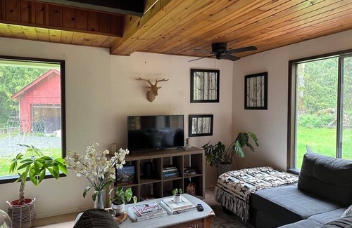 Escape to the Skykomish Valley in this three bedroom, one bathroom cabin in Baring. Nestled between the serene Skykomish River and the sheer peaks of Mt. Baring, your peaceful getaway awaits. Work from where you want to with recreation at your finger tips. Make the commute to and from Stevens Pass a breeze, snowshoe to Lake Serene, or just relax away from it all.