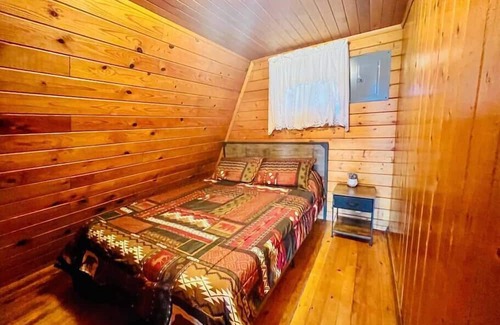 The A-frame is in a campground that includes 3 cabins, 6 lodge rooms, and 16 RV sites.