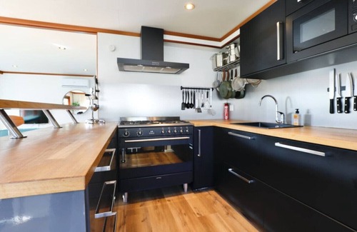 The kitchen is equipped with amenities such as a dishwasher, oven, microwave, citrus juicer, hand blender, Nespresso machine (coffee pods available at the reception), and sandwich maker.