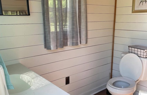 While on our property, you’ll enjoy a quiet and wooded landscape, multiple outdoor seating areas, a pond for fishing, a firepit, outdoor games, a kid-friendly playground, animals to watch, and farm-fresh eggs. You will also be provided ample parking and a convenient outdoor restroom.