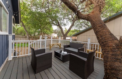 Welcome to our cozy 2-bd /2-bth home that is perfect for your stay. The home is a quick 11 minutes away from the airport and 20 minutes from all the tourist attractions downtown and the San Antonio Riverwalk, the #1 attraction in the state of Texas, has to offer. You are a 20-minute drive to Lackland AFB, making it an ideal spot for visiting loved ones. Enjoy endless shopping and numerous trendy bars and restaurants at The Rim,(therimsa.com) only 15-20 min away. Fiesta Texas is easy to get to, about 20 minutes. Sea World is about 30 minutes away, but a straight shot taking 1 highway. And nearby, nature lovers will appreciate the proximity to Hardberger Park, about 4 miles away. Hardberger has miles of paved and unpaved trails for hiking all day! The fully equipped kitchen w/free coffee/tea will make you feel right at home. You also have an air fryer, plates, cups, wine glasses, and all needed utensils at your dispaosal! Parking available for 3 vehicles (2-car carport and 1 car garage wth door opener). And please please enjoy the well-lit "Good Vibes Only" patio deck for a relaxing time under the stars or for an early morning coffee and reading outdoors! Or just enjoy it doing nothing at all! Its our little crown jewel of our property and we love it! During your stay, watch streaming movies on the 55inch TV in the living room. Meditate or read in the quiet room, with a sofa that adjusts for a refreshing afternoon nap! The neighborhood is quiet and peaceful. The trees are big and tall. So napping is almost effortless! Visit San Antonio and stay with us for a comfort and relaxation in our GOOD VIBES ONLY little getaway! An ideal base to explore all SAN ANTONIO has to offer.