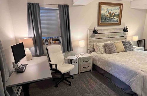Wind down after a day of adventure on the comfortable, king-size bed. Enjoy some Netflix or login to favorite subscription on the 50" 4K smart TV. If you prefer to read, we have a small library of literature and maps including a number of books on topics of local interest. We also have some board games in the room. There is a nice office space with a desk, monitor, keyboard, and mouse, so you can hook up your computer and get the job done. A printer is available by request.