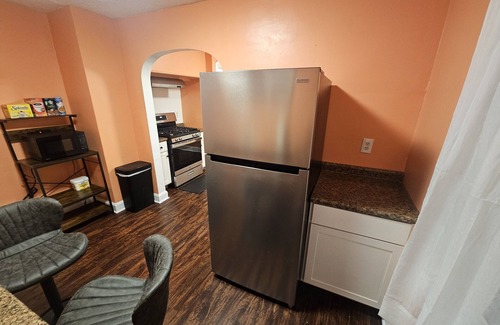 This home is conveniently located only 6 minutes from the airport, 5 mins from the IX center, and 4 minutes from the Cleveland Browns Training Camp. Whether you're visiting Baldwin Wallace University, attending a Cleveland event, or enjoying a nature getaway this is your basecamp for comfort and convenience! The bedrooms are gorgeous, featuring a queen bed, a full bed, and a twin bed, ensuring a comfortable night's sleep. It's easy to see why you'll be able to unwind at our place. Fenced Backyard, ample parking, AC, washer/dry, and WiFi, all your needs will be taken care of.