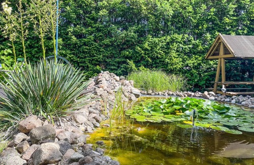 On the edge of the Dobbertiner Seenlandschaft and the middle Mildenitz valley you can relax with your little family in this charming country house. On two floors you will find everything you need for a carefree vacation and can fully concentrate on your relaxation from everyday life while cooking, playing and relaxing together. Start your mornings on one of the terraces and watch the fish in the pond.