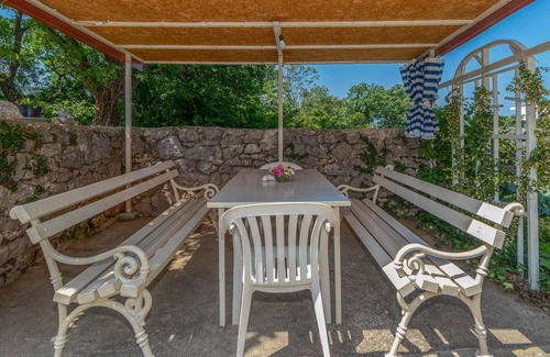 This comfortable holiday home is located in the hinterland of Crikvenica, in the small village of Softii and near Griana. It is simply and functionally furnished and extends over two floors, which are connected by internal stairs. The ground floor and the first floor each have a living room, a kitchen, two bedrooms and a bathroom. Although the holiday home is close to the road, the fenced garden is at the rear of the building and therefore offers sufficient privacy. The Mediterranean plants, the shady fig tree, the barbecue area and the terrace, where you can spend many pleasant hours outdoors, create a charming ambience. The popular coastal town of Crikvenica with its beautiful beaches and many bars and restaurants is just a few minutes' drive away.