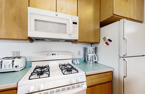 Inside, you'll find a cozy retreat with modern amenities to make your stay comfortable and convenient. With a king bed, queen bed, and family-friendly accommodations, this home is perfect for a relaxing getaway with loved ones. The fully equipped kitchen with a fridge, stove, oven, dishwasher, and microwave allows you to prepare delicious meals, while the coffee maker ensures you start your day right.