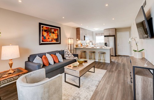 Large one bedroom that sleeps 4 comfortably. Full kitchen with everything needed for your stay. Our home is thoroughly cleaned and sanitized after every stay. Guests will enjoy our King Bed that will be a stylish experience in this centrally-located place.