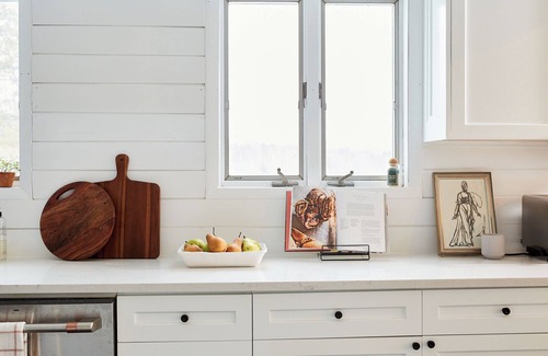 The house features 3 full bathrooms—two with bathtubs, perfect for kids' bath time, and one with a standing shower—plus a convenient 4th half bath on the upper level. Each bathroom is thoughtfully stocked with Public Goods essentials, blow dryers and fresh towels!