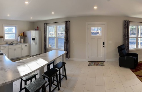 Newly constructed and measuring 925 square feet, our Cottage features a full kitchen complete with all the appliances you need to make yourself at home. There is a fire pit in the backyard with Adirondack chairs for you and your friends and family to enjoy. The living room features a smart TV and a queen size sleeper sofa. Each bedroom features a queen size bed and private bathroom with a shower/tub combo. There is a washer and dryer available for your use in the laundry room. Local Dollar General is conveniently 5 minutes away and a Beer and Wine store is 6 miles away if you forgot anything for your trip.