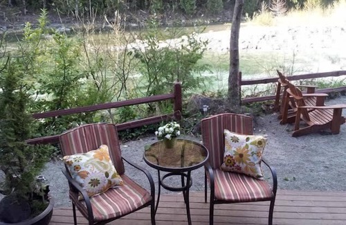 This two-story A-frame promises a romantic getaway filled with peaceful relaxation. The spiral staircase leads up to the loft where you will experience the most spectacular view of the river and mountains. When the salmon are running you can watch the eagles swoop down and fly away with their catch. From exploring the riverbank to relaxing by the fire or soaking in the private hot tub, you are sure to enjoy your stay. Fully stocked and ready for your first time or return visit, this property accommodates 2 guests (queen upstairs) main level has cozy fireplace, and promises a memorable experience.