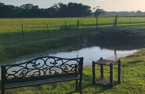This space is a charming guest suite just 15 minutes from downtown Lafayette and the airport, and minutes from Moore Park and seafood spots. Sleeps 2 guests on a full-size bed. Enjoy a light continental breakfast by the peaceful pond. The kitchen has a fridge, microwave, and coffee pot (stove decorative only). Relax with free WiFi and smart TV. Optional luxury spa amenities include steam sauna,red light therapy, foot & leg massager, vacuum suction.RV parking and golf cart rental available.