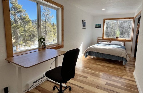Nestled among aspen trees and fully fenced for your furry friends, this beautifully remodeled home offers modern conveniences. Enjoy mountain views and abundant natural light. Explore nearby hiking and biking trails. Local breweries are just a short drive away. Reliable Starlink Wifi suitable for working from home.