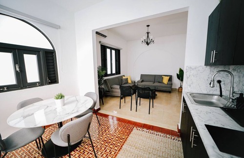 Casa Sagrado is a brand new property centrally located in Santurce. It is an older Colonial-Spanish home which was completely remodeled and updated into several units-4 two-bedrooms, 2 one-bedrooms and 2 studios; so if you have a large group you could rent several units and all stay in one location. Original Spanish Tiles were preserved wherever possible, and the property has grand archways and high ceilings that date back to when the house was originally built. As a resilient home, Casa Sagrado #1 is equipped with a robust 100kw generator and a substantial water cistern, boasting over 1000 gallons of capacity along with a reliable water pump. These features ensure uninterrupted power supply and a sufficient water source, even during challenging circumstances.