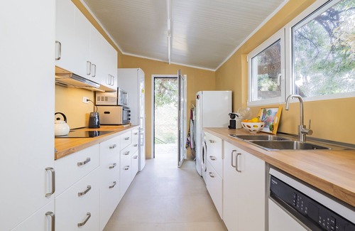 In its 80 m² distributed over two floors, the house has three bedrooms for up to six people (although the official capacity is for five), with a double bed and a single bed on the attic-style upper floor, ideal for children and teenagers, and two bedrooms with double beds on the lower floor, next to a spacious living-dining room and fully equipped kitchen with modern appliances (fridge, microwave, oven, dishwasher, coffee maker, toaster and more). The fixed wooden staircase leading to the upper floor is not suitable for very young children due to its inclination.
