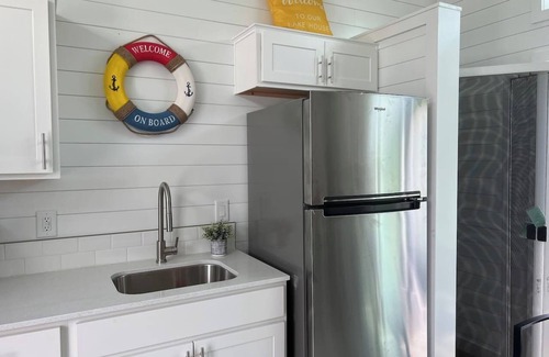 Check out this brand new FloatHouzz on beautiful Lake Cumberland! Perfect size for a family trip to the lake! Stay right on the dock in the White Tiny! When you walk in notice how open and airy it is! On the main level is a fully stocked kitchen, living room area with a flat screen TV and sleeper sofa, master bedroom with a king size bed and a bathroom! The loft is the perfect place for the kiddos to hang out! In the loft you will find a full size bed and twin bed!