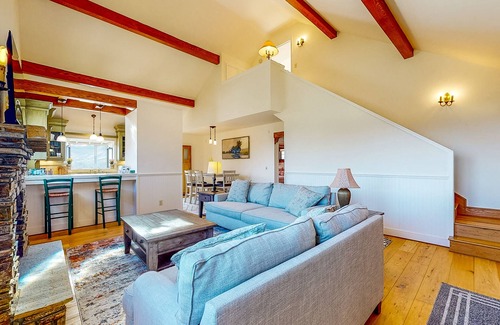 Situated on 2.5 acres of private land, this custom-crafted home exudes warmth the moment you enter the door. The living room features soft seating, and a large TV. Relax here while the chef of your family shows off their culinary skills in the well-equipped, farm-style kitchen. Dine with mountain views in the sunroom, or eat family-style at the dining table.