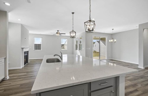 Kitchen: Level 5 Granite Countertops, CustomWhite Cabinets, Center Island w/ Breakfast Bar & Single Bowl SS Sink, Accent Pendant Lights, SS Appliances, Walk in Pantry! Open to Spacious Dining Area!