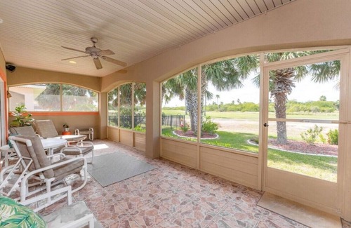 This 3-bedroom, 2-bathroom home pet friendly is situated on the 17th fairway of a golf course. Master bedroom has a king bed and a master bathroom . Second bedroom has a Queen bed . The third bedroom has a Queen bed . The den has a sofa sleeper . It features a screened-in back porch with views of the wildlife corridor and stunning sunsets. The yard is beautifully landscaped with mature palm trees. Inside, you'll find an open floor plan . All bedroom's have smart TVs for stream Located in the prestigious South Padre Island Golf Community, amenities include heated pools, an 18-hole golf course, fitness room, owners' clubhouse, and tennis/pickleball courts. The sandy beaches of South Padre Island are just a short drive away. 🏡🌴⛳