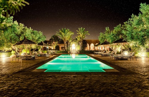 This magnificent modern villa represents the height of luxury living in a quiet location less than half an hour from the exciting city of Marrakech. The spacious single storey building is beautifully furnished and superbly equipped with every modern comfort including a Turkish bath. Whilst basking in sunshine and surrounded by palm trees, one can enjoy spectacular views of the Atlas Mountains, which are covered in snow until late May.