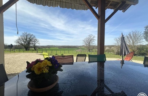Gîte adjoining owners' holiday home at meeting point of three departments (Ain, Saône-et-Loire and Jura), 5 minutes from A39 motorway. Fully renovated farm in open countryside for up to 6 people (3 bedrooms). Ground floor: entry direct into lounge area (beamed ceiling, pleasanr uncluttered décor with a few brightly coloured details), open-plan fitted kitchen, separate WC (wash hand basin). Dining area with access to covered terrace (fine view of surrounding countryside). 1st floor: corridor leading to 3 air conditioned bedrooms in different colours. Beige bedroom (queen-size bed, reading area), Blue room (two 90x200cm beds), Chocolate room (two 90x200cm beds). Spacious shower room, separate WC. Small storage area with baby equipment.|Bonus features: charges (electricity, heating) included in rent. Enjoy a relaxing holiday in this leafy setting where you may catch sight of a doe and her stag, get to know Minus the cat and explore this region with a rich architectural heritage and lots of leisure activities.
