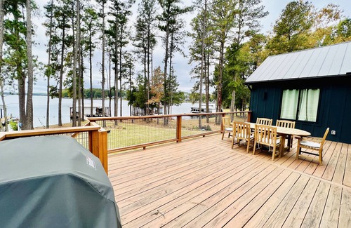 If you are looking to escape to Lake Gaston this is your place! Situated on main lake, yet tucked back enough to enjoy calm water. Flat walk to large boathouse house with plenty of covered and open space. Cleats to tie up boat if would like to bring your own boat. Deep water off boathouse for swimming, jumping and boating. Covered patio and open air deck give plenty of outdoor space for all weather. Enjoy the lake, boating, kayaking, campfires and more at this modern cabin lake house!