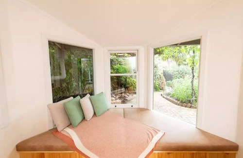 The cottage sits a the top of the property with views over the landscaped edible art garden. With 2 twin share rooms, a large bathroom, open-plan living with a wood fire and bay window this cottage is the perfect place to for a soulful retreat.