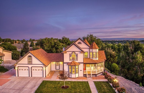 Experience the charm and comfort of this spacious modern Victorian home, nestled in a quiet cul-de-sac with stunning views of the Grand Mesa and Uncompahgre Plateau. Thoughtfully designed for families and groups, this home features a wraparound porch, a private backyard, and a game-ready garage — combining timeless character with modern amenities.