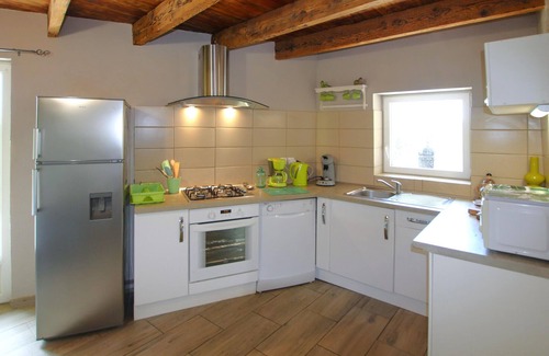 This tastefully furnished and lovingly restored natural stone house welcomes you, nestled in the wooded hills of the Monts d'Ardèche nature park, on the edge of a historic hamlet, and spoils you with a great panoramic view of the countryside. Conjure up delicious meals in the spacious kitchen and make yourself comfortable for cosy game nights in the inviting living room.