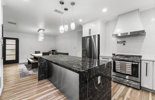 Your home away from home in Palmdale with stylish modern amenities,and a comfortable large house. Five beautifully decorated spacios bedrooms with TVs in each room, remote control included. This welcoming house features 1 king bed in the primary room. plus 4 queen beds, and 1 twin bunkbed, perfect for a group getaway.