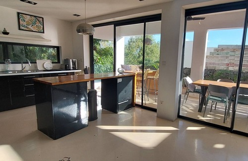 Sublime loft in Tamarin with panoramic views of the morne mountain which is the best known on the island and on Tamarin bay. Relax in serenity and enjoy your peaceful moments near a large private swimming pool which is located on the roof! Entirely imagined by an architect, the place offers exceptional volumes in height. The huge picture windows provide the feeling of living outside and provide abundant through light. On the ground floor, a fully equipped kitchen open to the living room and dining room offering a magnificent view of the hill and the bay. A first bedroom, air conditioned with half-outside shower. On the first level 2 bedrooms en suite with a treadmill in one of them. Also an office and outdoor terraces with love bed relaxation area always with a view. Finally on the second level, the swimming pool (6 * 3 mts) on the roof with a 360 degree view of the ocean and the mountain, barbecue area, a bar and sun loungers and garden furniture.