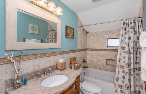 This beachfront family friendly oasis is directly on the ocean with wide sliding doors welcoming refreshing ocean breezes and incredible views. You will love waking to the relaxing sound of the waves crashing softly on the shore. Walking out the back door past the patio to a short path to the ocean where You will have the beach to yourselves to lounge, read a book or take a walk to look for shells. There is lots of wildlife, pelicans, ospreys diving for baitfish, pods of dolphins in the surf chasing baitfish. Sea turtle nesting season is March 1st through October 1st, peaking in June and July with guided turtle walks available. The surfing can be good at times, and paddle boarding, boogie and skim boarding and other beach activities can always be enjoyed. Inquire to rent a Golf Cart or E-bike for a fun open-air experience and to get around town easily.