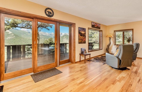 Only minutes away from downtown Estes Park, Colorado, Divine Duo provides a picturesque view of Long's Peak and the Rocky Mountain National Park. Keeping the family close together with two full kitchens and a 4 car garage with the best possible view of the Rockies in all of Estes Park!
