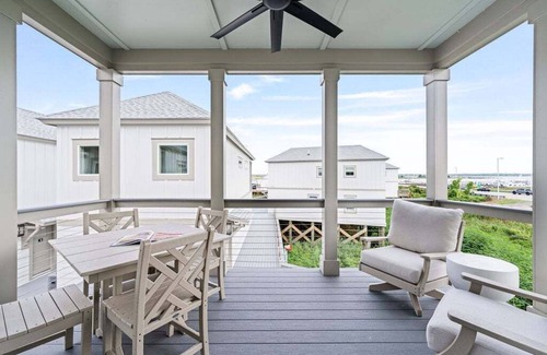 DETAILS: Winyah Bay Club features 17 stylish, individual cottage units, each ideal for large wedding parties, golf enthusiasts, and families. This cottage offers two spacious bedrooms, two and a half baths, and a master suite with breathtaking water views. The open-plan living room, kitchen, and dining area on the second floor are designed to maximize the stunning waterfront vistas, making every stay memorable and luxurious.