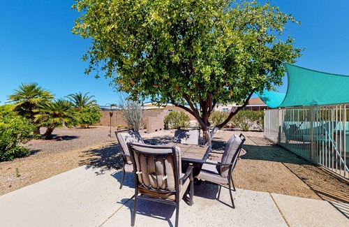 This single-level home is located in a 55+ (at least one guest) community of Sun City, a setting that's wonderful for snowbirds and sun-seekers of all stripes. Two adult-size bikes are even provided for getting around the neighborhood. You'll be within a mile or two of several excellent golf courses, and an easy five-mile drive from Mariners and Padres Spring Training games at Peoria Sports Complex.