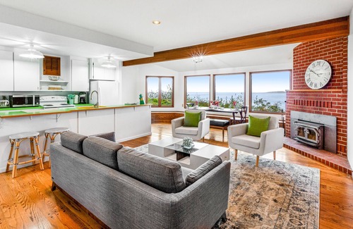 Dog-friendly Puget Sound cottage with private gym, sweeping views, fireplace | House in Hansville