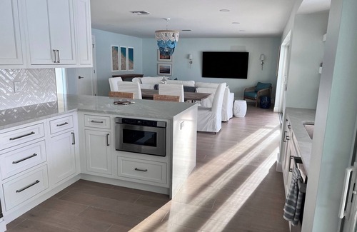 Welcome to our fishing, boating and dolphin-loving paradise. Our home was just completely renovated all the way down to the plumbing and ductwork due to Hurricane Ian. It's back to being a breezy beach bungalow. You'll enjoy the climate-controlled pool and the easy walk to the beach. You can catch good fish right off of our dock (rods are available in the garage). But really I think the best part is sitting on the back patio with the fans blowing salty breezes while looking for dolphins and manatees. You will likely see dolphins every day. They come so close you can hear them talking to each other. You may even get splashed as they chase fish under our dock.