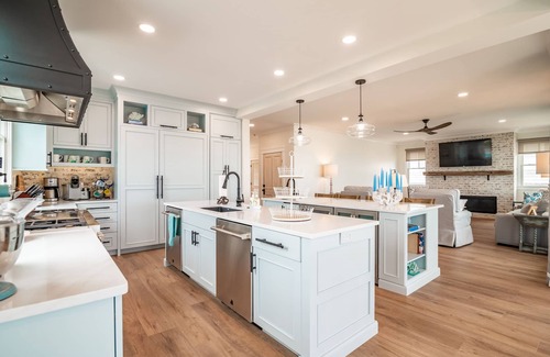 Located ocean front on Springs Ave in Pawleys Island, guests can enjoy super sunrises from DolphinView's porches with swings, and incredible sunsets from its creek dock which has a hammock. The home features 7 bedrooms and 6.5 bathrooms. There are 2 oceanfront King Suites. Fully equipped with brand new kitchen renovations and added features such as a gas powered fire pit, crab pot, pot filler, wine cooler, 2 dishwashers, a coffee pot and keurig- the new and improved DolphinView will blow you away! Bedding accommodations will include 4 kings, 2 queens, and twin sized bunk beds.