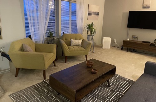 We have a double closet for you, double dresser, a 4K brand new OLED tv in the living room and a tv in the larger bed room, cable in both tv’s, smart tv, prime video capable, Netflix capable, tempur pedic mattress in the larger bedroom, games for the family, a record player, an 8 track player, an air fryer oven and so much more!