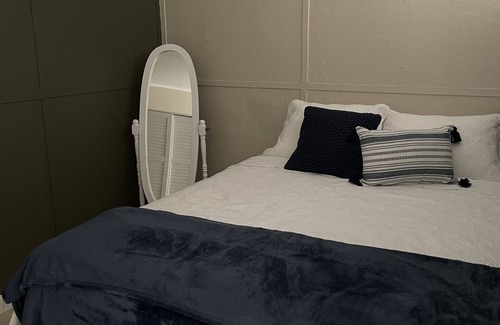 Tastefully decorated, fully furnished, with Queen bed & additional full-size sofa/sleeper. Full bathroom with shower, kitchen, living room with Partition wall to bedroom, smartTV & WiFi.