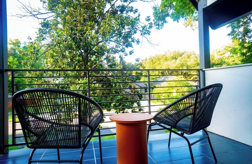 Bedroom 2 - The Blue Room: Enjoy a king-sized Purple mattress with Parachute linens and Garza Marfa robes, plus and a private patio with a luxe lounger perfect for catchups over morning coffee.