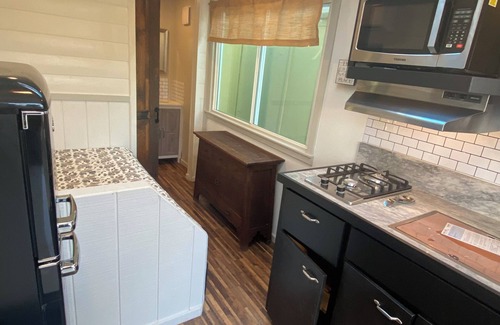 - Full Kitchens: Each tiny home and vintage coach features a fully equipped kitchen, allowing you to prepare your meals with ease. The glamping tents include a small kitchenette for your convenience.
