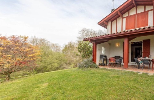 St Pée sur Nivelle 15 km from Saint Jean de Luz: Single-family house "Eki Alde". 15 km from the sea, 5 km from the lake, 15 km from the beach. Private: property 2'300 m2 (fenced), parking (for 3 cars). Grocery 1.5 km, supermarket 2 km, restaurant 1.5 km, bakery 1.5 km, bus stop 5 km, sandy beach "Saint Jean de Luz" 15 km, outdoor swimming pool 11 km, thermal baths "Cambo les Bains" 16 km, bathing lake 5 km. Golf course (18 hole) 11 km, tennis 11 km, riding stable 11 km. Hiking paths: La Rhune 12 km, Espagne 13 km. The keys‘ handover takes place by the agency Interhome in Saint Jean de Luz, 13 km.
